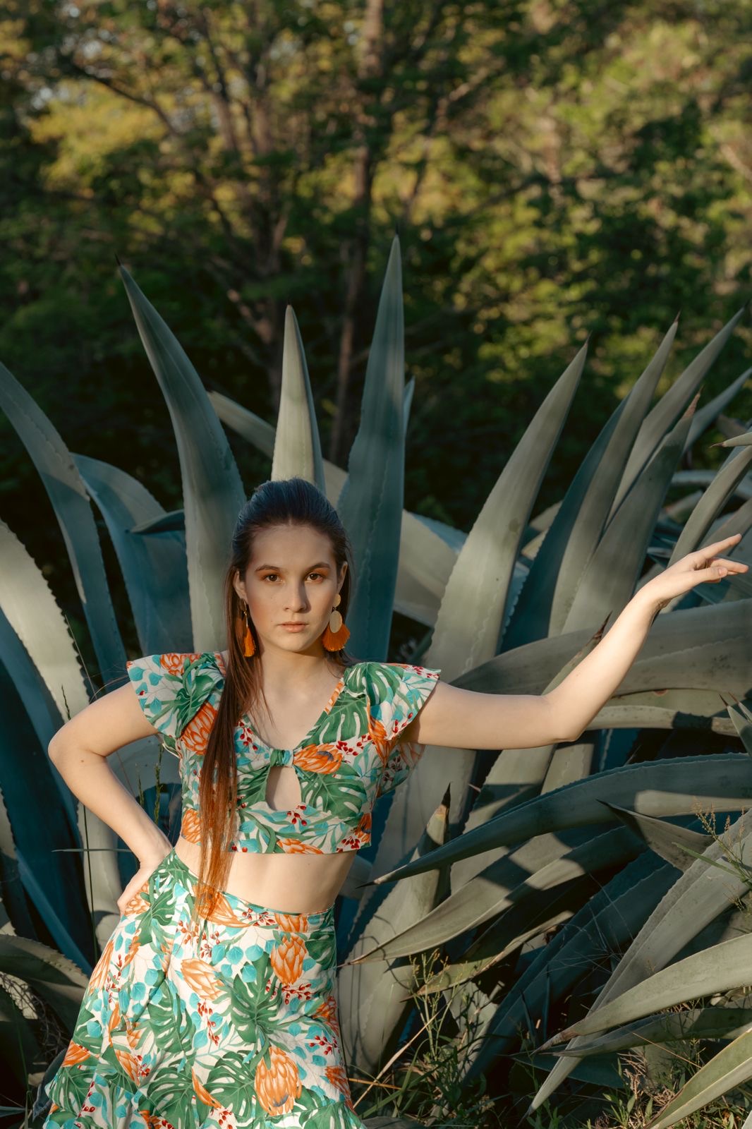 Conjunto Falda + Crop en Viscosa Simil Lino